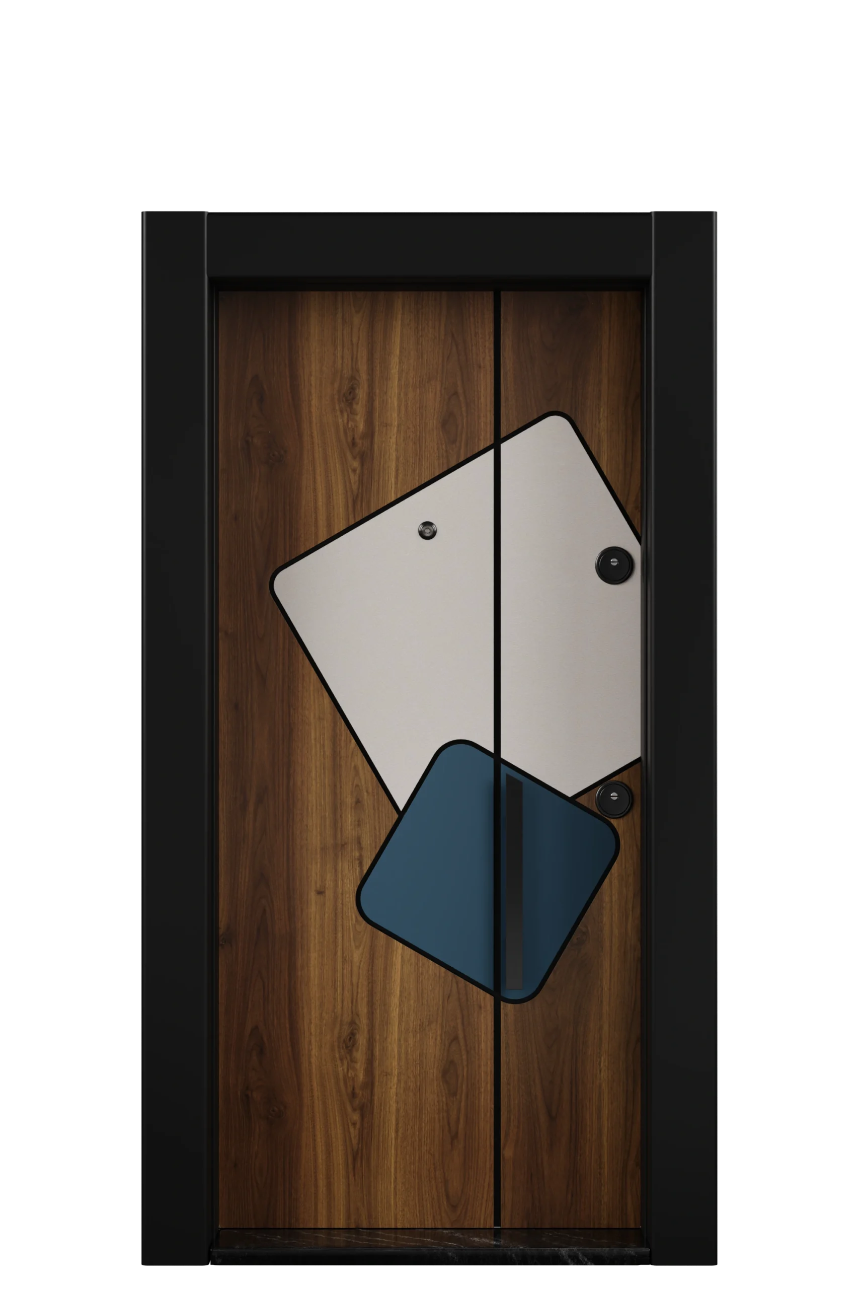 • Kapı kanadında 180 derece görüş sahasına sahip büyük cam mercekli dürbün, kapı içerisine monte edilecek gizli emniyet kelepçesi mevcuttur.