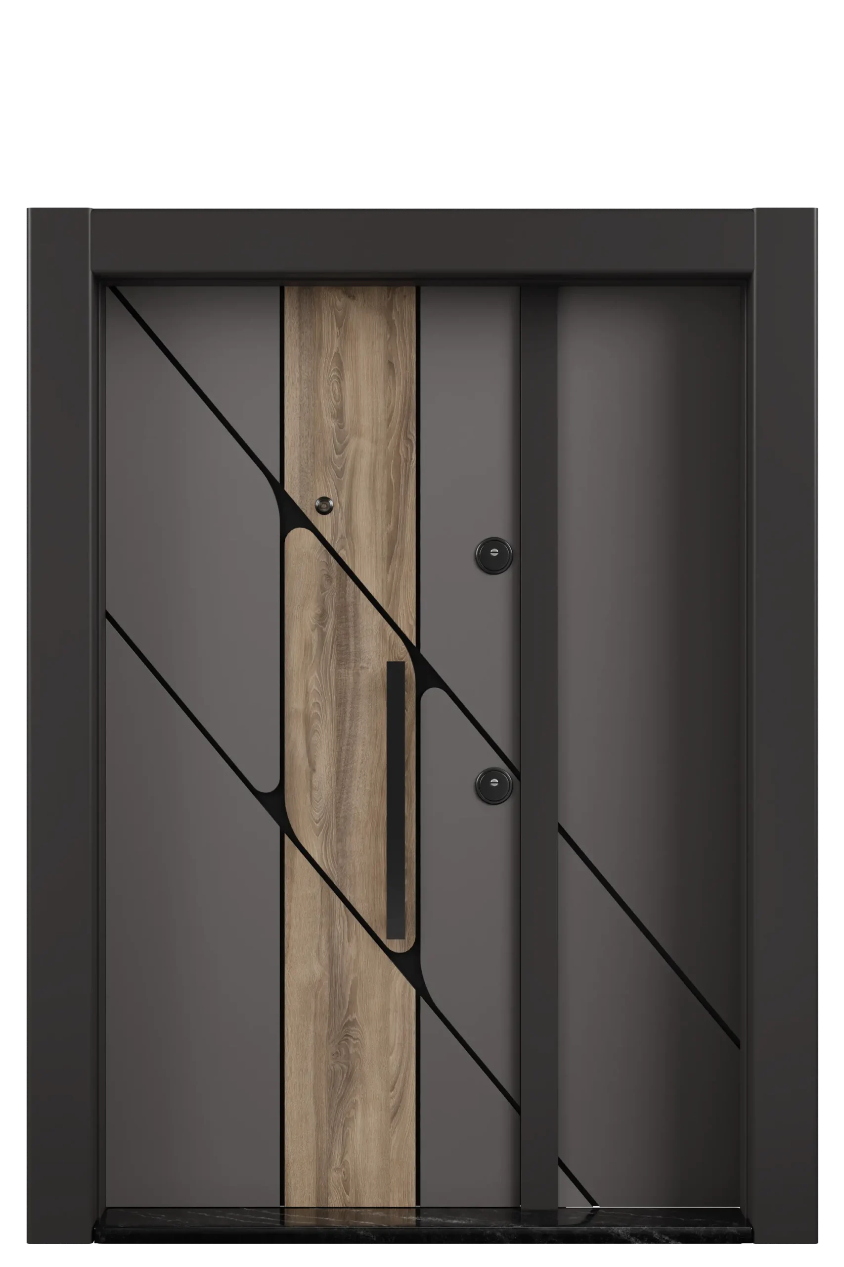 • Kapı kanadında 180 derece görüş sahasına sahip büyük cam mercekli dürbün, kapı içerisine monte edilecek gizli emniyet kelepçesi mevcuttur.