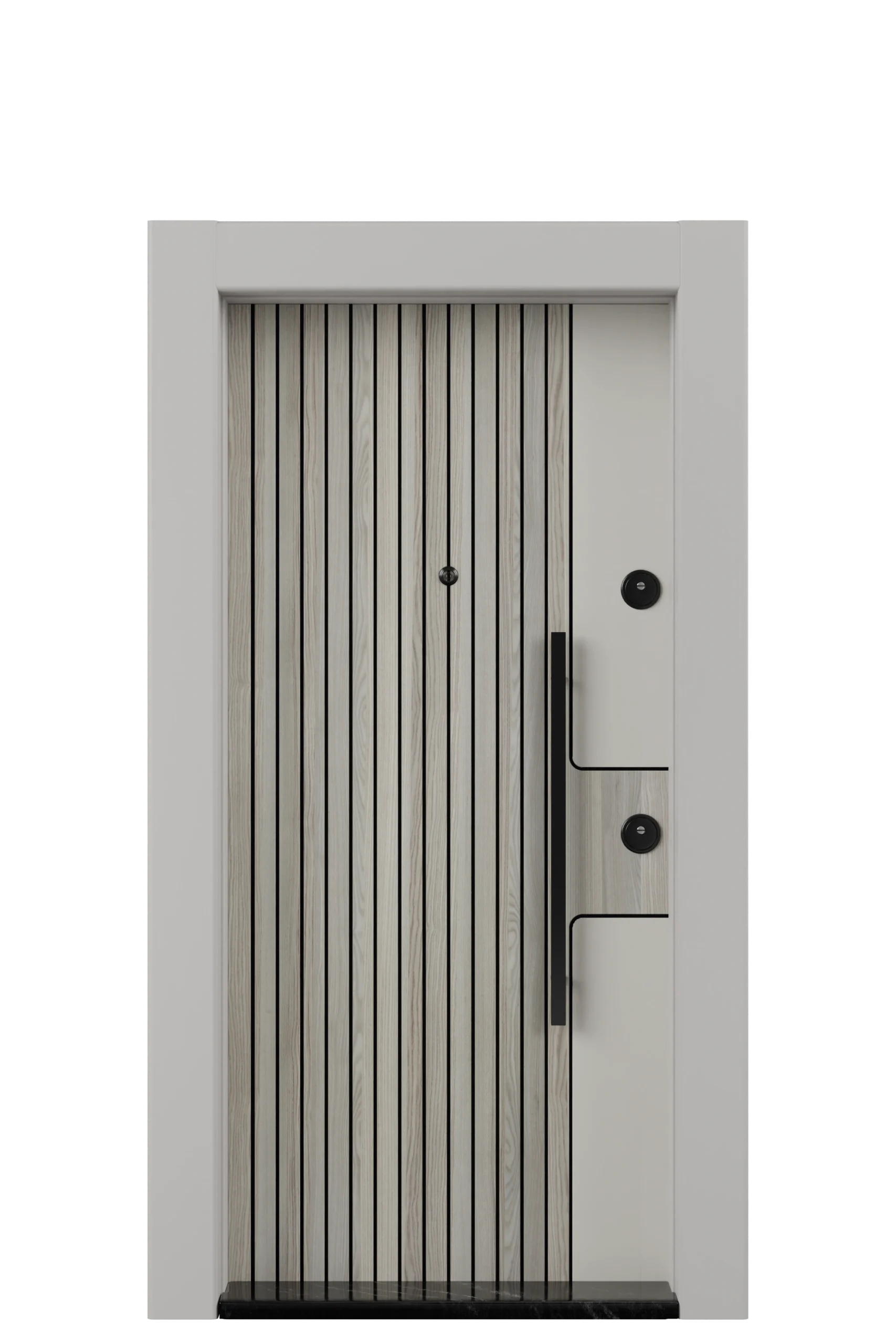 • Kapı kanadında 180 derece görüş sahasına sahip büyük cam mercekli dürbün, kapı içerisine monte edilecek gizli emniyet kelepçesi mevcuttur.