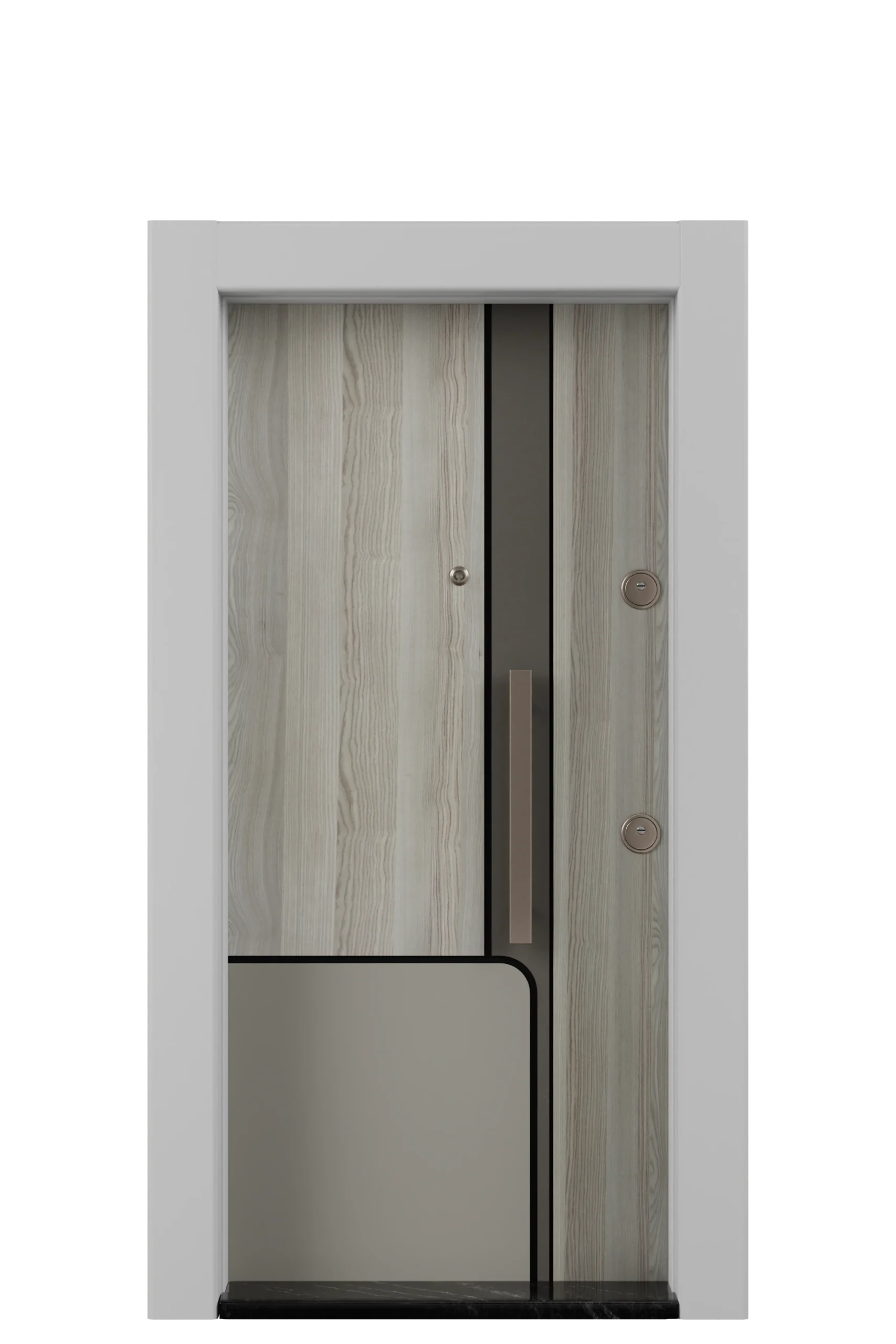 • Kapı kanadında 180 derece görüş sahasına sahip büyük cam mercekli dürbün, kapı içerisine monte edilecek gizli emniyet kelepçesi mevcuttur.