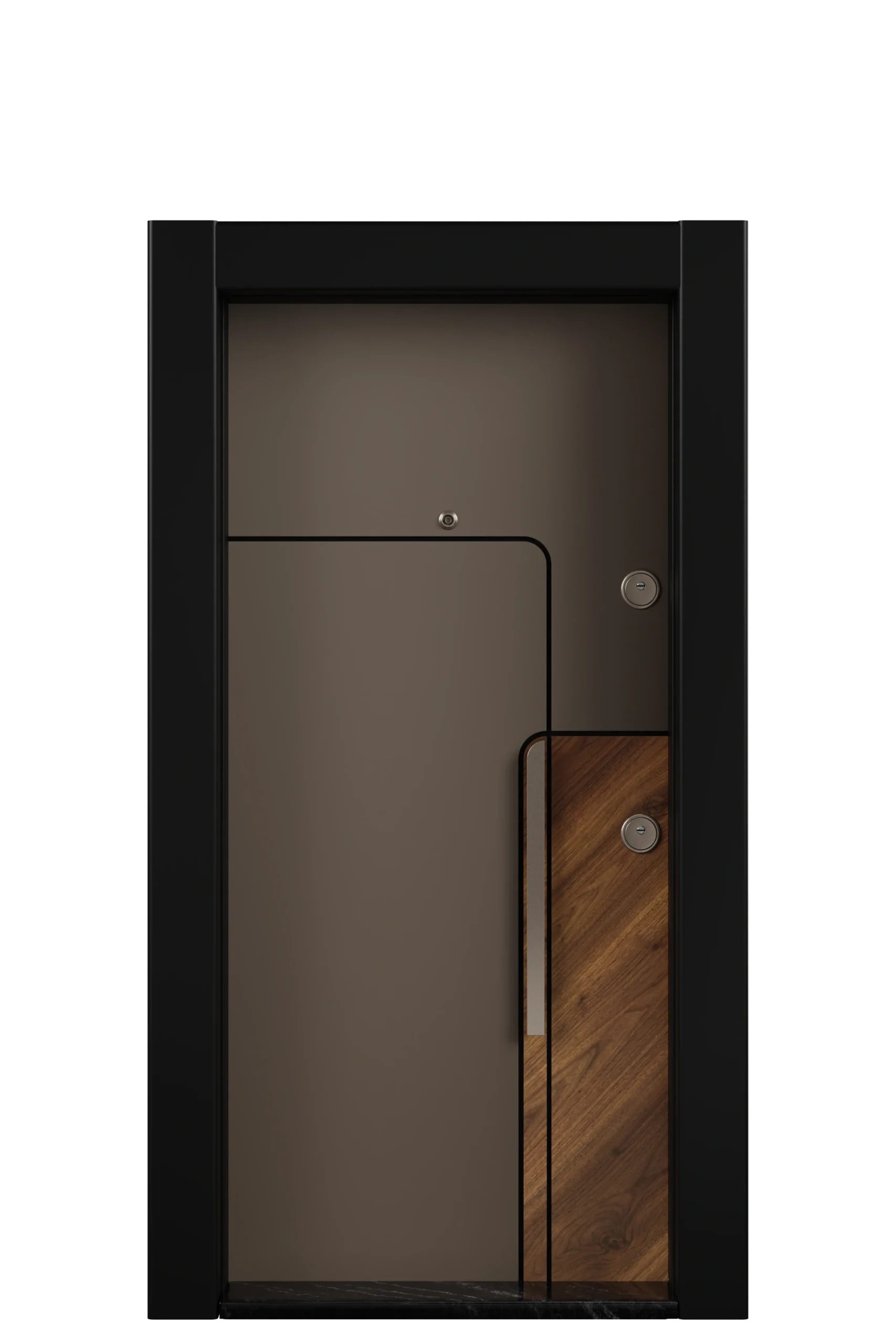 • Kapı kanadında 180 derece görüş sahasına sahip büyük cam mercekli dürbün, kapı içerisine monte edilecek gizli emniyet kelepçesi mevcuttur.